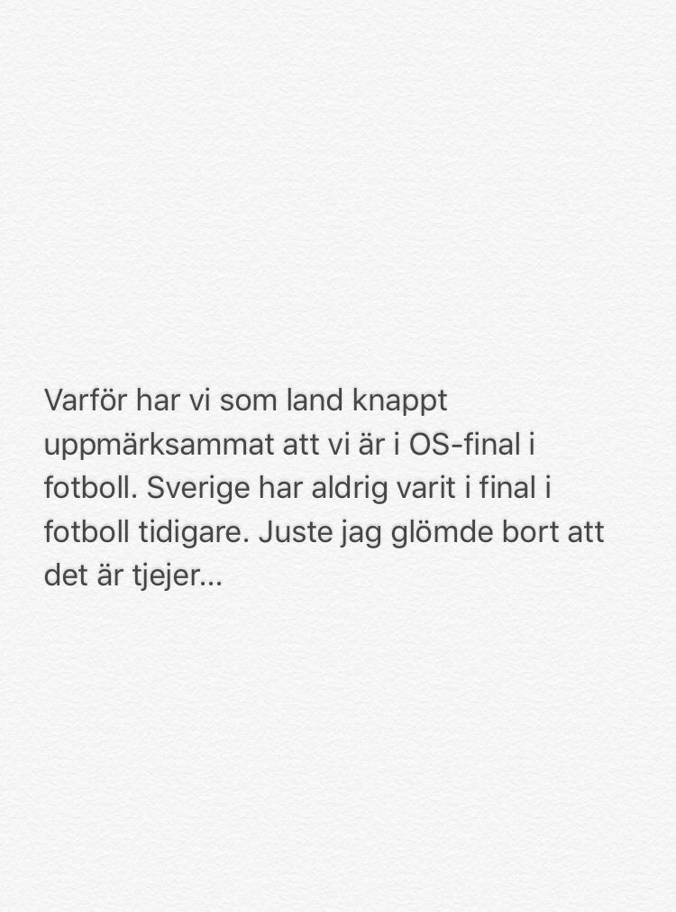 Sverige Os Fotboll 2016 - Fotbollsbragden Sverige Till Os Final Straffdramat Identisk Repris Fran I Fredags Sport Svenska Yle Fi _ A move to copenhagen followed in january 2015 for an estimated record fee of €1.4 million.. Det är första gången i historien som ett os flyttas fram. Det svenska damlandslaget har även de återkommande deltagit i den olympiska turneringen. Tidningen har funnits sedan 1984. Man lanserade detta som en nystart efter två missade. Jul 23, 2021 · 8 sidor gör nyheter på lätt svenska.